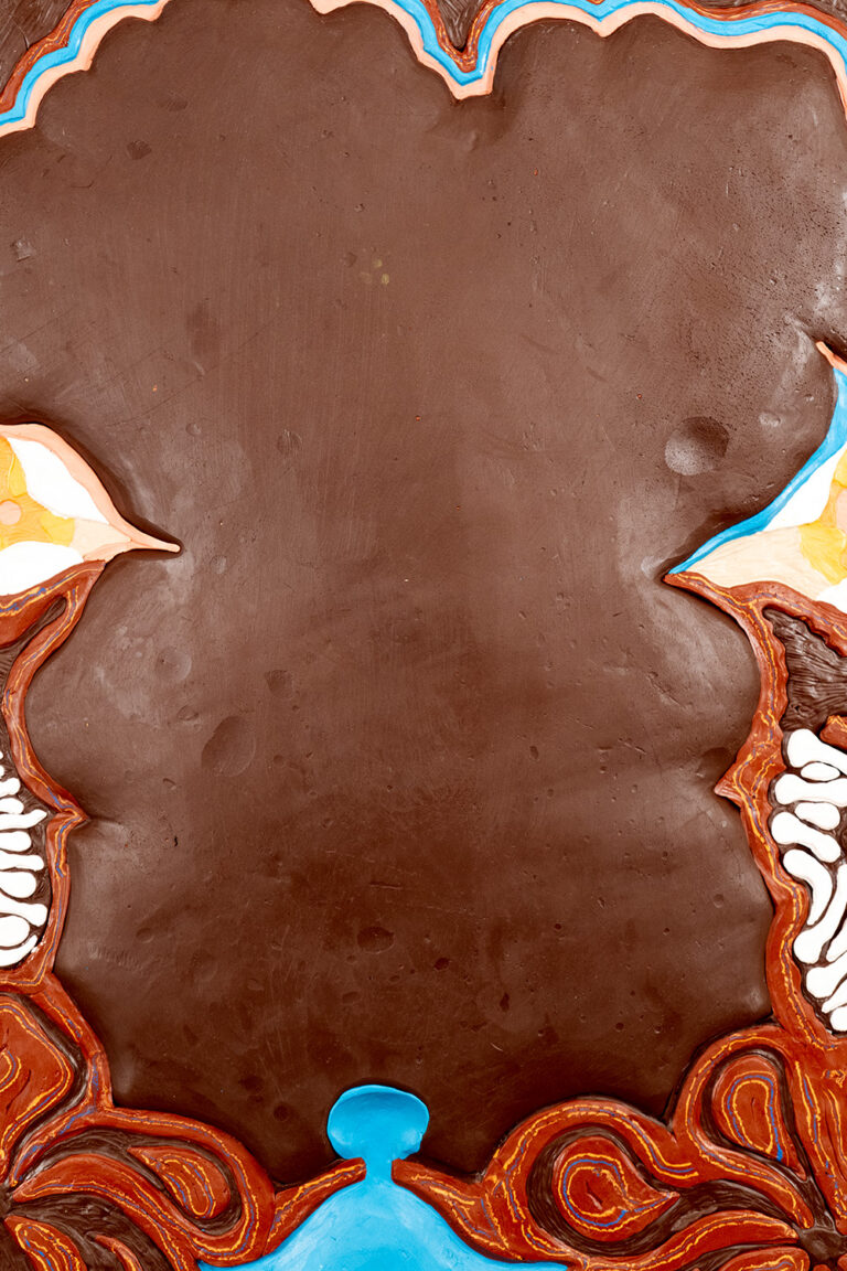 Post navigation ←PreviousNext→ Anthem For My Belly Anthem For My Belly, 31.5w x 30.75h x 1.5d inches, 2025, epoxy clay and dispersed pigment.